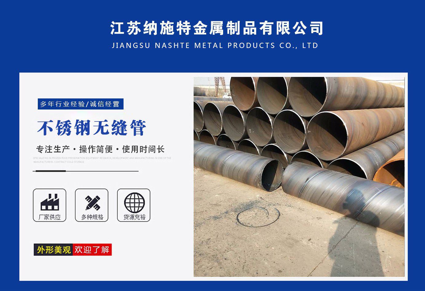 江蘇納施特金屬制品有限公司是一家集生產205不銹鋼無縫管,2507不銹鋼無縫管,316l不銹鋼焊管廠家,不銹鋼工業焊管廠家,厚壁無縫鋼管廠家等產品,公司庫存多規格齊全、質量保證。公司一貫以服務至上、質量至上、價格合理、客戶至上、讓利客戶、薄利多銷為原則,誠實守信為宗旨?! 」颈小皟炠|的品質和服務創造企業品牌”之宗旨,與國內外多家知名廠商建立了長期穩定的合作伙伴關系,精心匯聚各廠商的品牌產品,實現了資源互補,以適應市場的不同需求,協助廣大廠商提高自身的競爭力,是您的理想合作伙伴。 公司下屬:業務部、財務部、快運部、運輸部、倉儲部、加工部、(自備貨車、吊車、行車、自動切割、半成品)免費為用戶提供裝卸等一條龍服務。保證用戶利益、互惠互利做生意、誠心誠意交朋友。 服務承諾:提供優質的不銹鋼及有關產品,遵守道德標準,努力提供獨特的產品和高水平服務。 質量承諾:隨時為客戶提供產品和服務,充分領會客戶要求,盡職盡責,永無例外,竭盡全力,持續發展?! 」颈校骸邦櫩椭辽希J意進取”的經營理念,堅持“客戶至上”的原則為廣大客戶提供優質的服務?! ≡肝覀児竞蜕鐣鹘缤省⒅T位朋友、尊貴的各位客戶攜手并進,共同發展,同繪新世紀的宏偉藍圖! 公司宗旨:優質的品質和服務創造企業品牌?! 〗洜I理念:以...